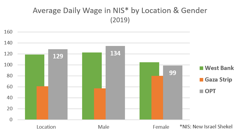* Palestine data from Labour Force Survey – Annual Report 2019, Palestinian Central Bureau of Statistics. “OPT”: occupied Palestinian territory (West Bank, Gaza Strip, East Jerusalem). “WB”: West Bank. “GS”: Gaza Strip.