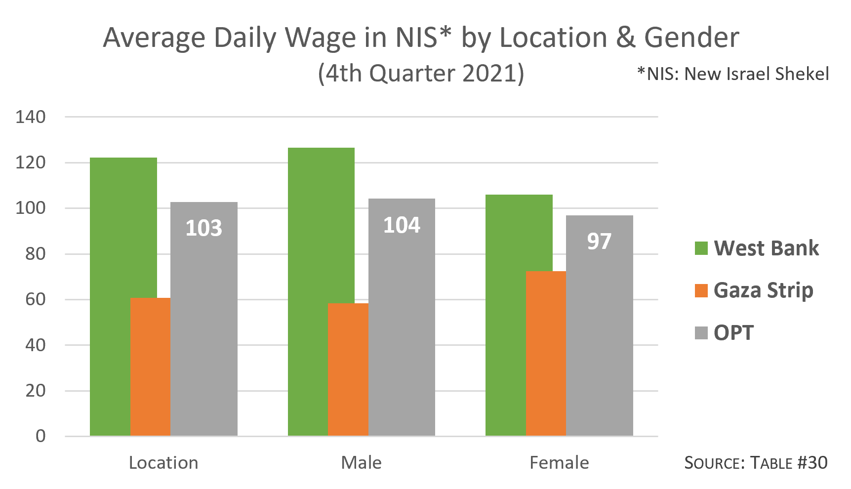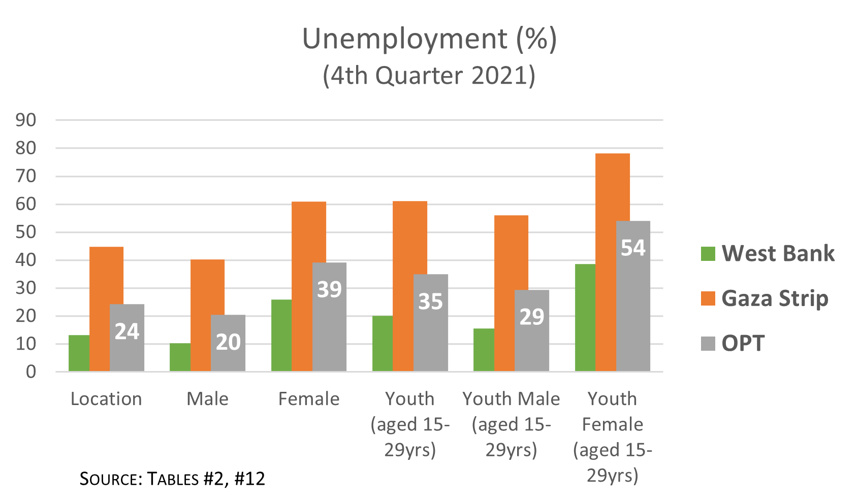 * Palestine data from Labour Force Survey, 4th Quarter 2021 (Oct-Dec), Palestinian Central Bureau of Statistics. “OPT”: occupied Palestinian territory (West Bank, Gaza Strip, East Jerusalem). “WB”: West Bank. “GS”: Gaza Strip.