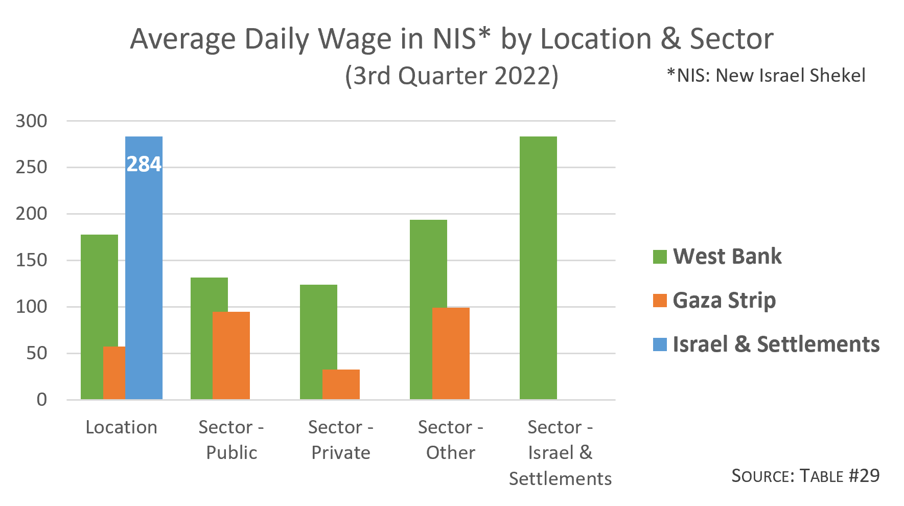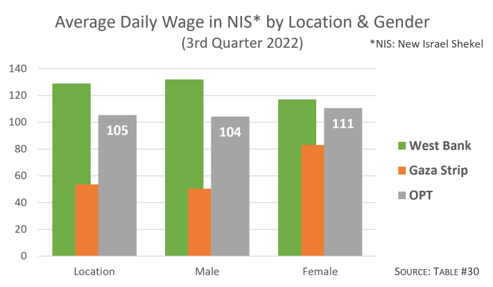 * Palestine data from Labour Force Survey – 3rd Quarter 2022 (Jul-Sep), Palestinian Central Bureau of Statistics. “OPT”: occupied Palestinian territory (West Bank, Gaza Strip, East Jerusalem). “WB”: West Bank. “GS”: Gaza Strip.