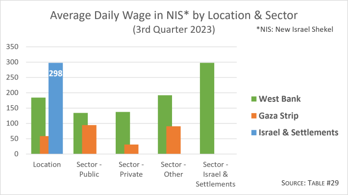 * Palestine data from Labour Force Survey – 3rd Quarter 2023 (Jul-Sep), Palestinian Central Bureau of Statistics. “OPT”: occupied Palestinian territory (West Bank, Gaza Strip, East Jerusalem). “WB”: West Bank. “GS”: Gaza Strip.